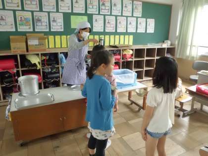 おかわりいる人!の声かけに,たくさんの列が出来ました。