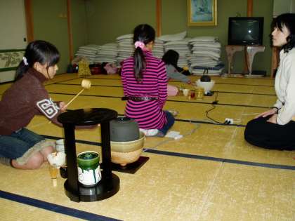 明親小学校には茶道部がありま。毎週月曜に明親館でお稽古に励んでいます。