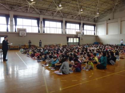 校長先生の話を静かに聴いています。
