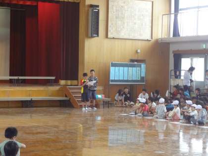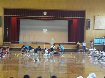 運動会のなかよし種目の説明をきいています。