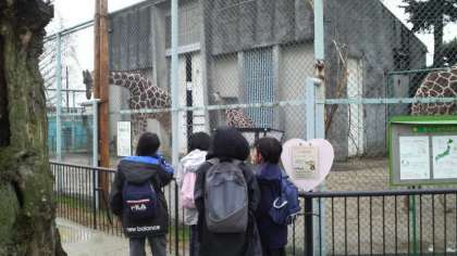 小さな巨匠展で,自分たちが作った動物を鑑賞した後,動物園に立ち寄り,本物の動物に出会いました。キリンの足に,ハートマークに似た模様を見つけたそうです。