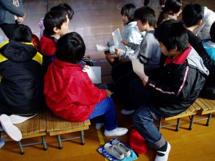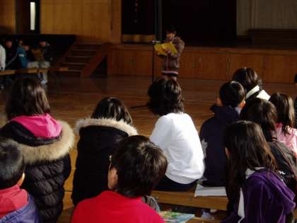 今日の2時間目,体育館で中学年(3・4年生)の人権集会が開かれました。中学年では,「友だちと,もっと仲良くなるには,どうすればよいのだろう。」というテーマのもと,代表者3名のスピーチを聞いた後,縦割りのグループに分かれて話し合いをしました。3年生を気遣いながら話し合いをリードする4年生の姿に,その答えの1つが見受けられました。