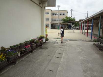 環境委員会の子どもたちが水やりをしていました。