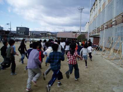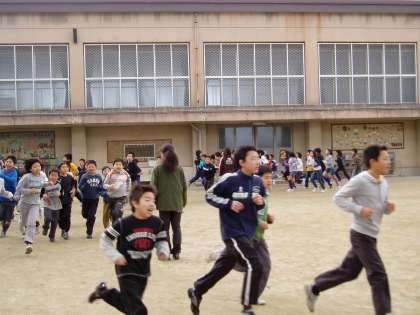 2月24日に京都競馬場の馬場で実施する明親小学校の持久走大会に向け,中間休みのジョギングタイムがスタートしました。低学年・高学年共に寒さを吹き飛ばす勢いで運動場を走りました。