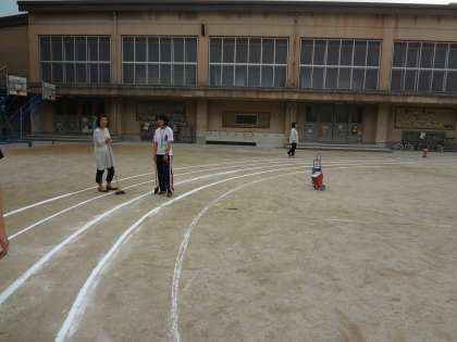 運動会に向けて,トラックのライン引きを行いました。
