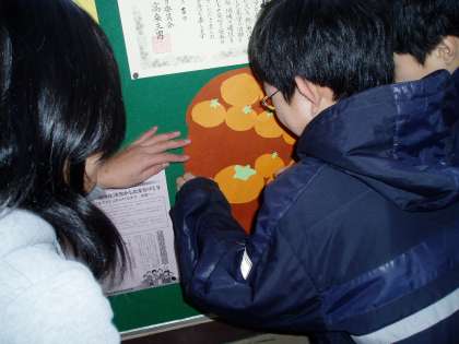 毎月の第1金曜日は,高学年の委員会活動があります。自分たちの学校を自分たちの手で,楽しく気持ちの良い学校にしようと様々な委員会が活躍しています。下の写真は,環境委員会の児童が,冬らしさを味わえるように,作品を掲示しているところです。