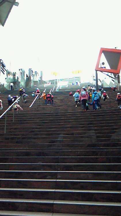 京都駅の大階段を上っています。駅の様子や施設なども学習の材料になります。