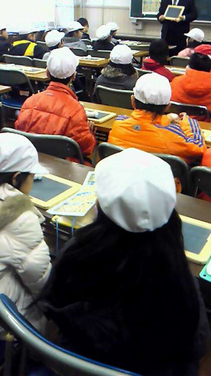 午後から学校歴史博物館で体験学習をしています。昔の学校では,紙のノートではなく,石盤(せきばん)に文字などを書いて学習していたことを知りました。子どもたちからは,「学習した内容を記録に残せないのが残念だ。」という感想が聞かれました。