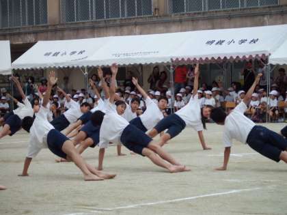 5年生は,騎馬戦でした。明親大合戦らし正々堂々と闘っていました。6年生も,『未来へ2014』のテーマにぴったりの組体操でした。最後のみんなの言葉と演技に涙がこぼれました。