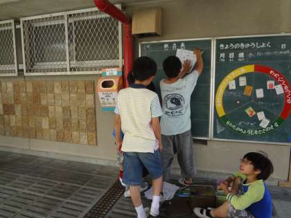 給食委員会の子どもたちが栄養黒板の作成をしていました。
