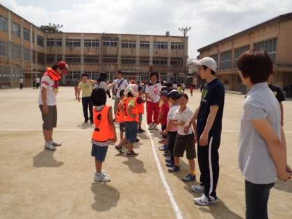 たくさんの参加者がグループに分かれ,総当たり戦で試合を行います。保護者の方や担任も入り,どのチームも勝利を目指してたたかいます。