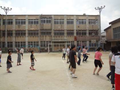 高学年の子どもたちと,教員・保護者チームで試合をしました。