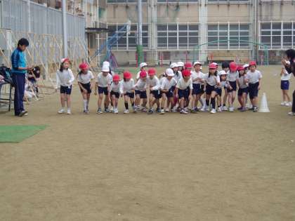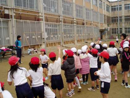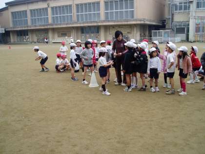 2年生も持久走に取り組んでいます。「よーいドン」でスタートし,運動場を8周します。ペアの友だちに周回を教えてもらい,ゴールすると自分のタイムを教えてもらいます。今日の自己タイムから次の目標を決め,また挑戦します。みんな生き生き活動しています。