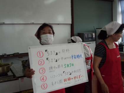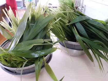 今日は,淀女性会の方と3年生がちまき作りをしました。