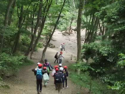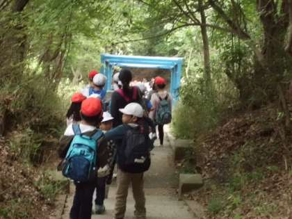 お弁当を食べ,たっぷりと水分補給もし,みんなで元気よく下山しました。「先生,下りはらくらくやなぁ。」「すずしいね。」「下りは,この木や空気からマイナスイオンをもらってる気がするわぁ。」などど声が聞かれました。あっという間に,出町柳まで着きました。