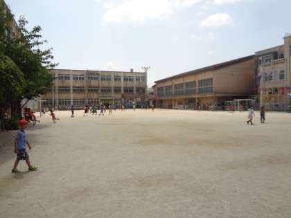グラウンドで元気よく遊んでいます。