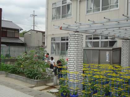 学年園の水やりをがんばっています。