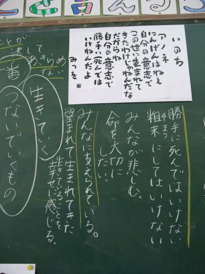 5年生は,相田みつおさんの詩を読み,「命」について考え合いました。みんな真剣に詩の意味を考え合いました。