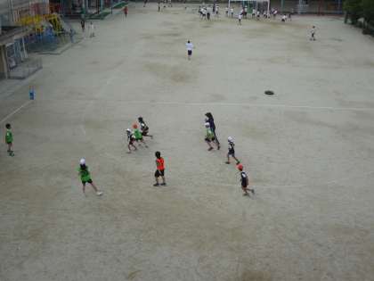 グラウンドの半分を使い,バスケットボールクラブも活動をしています。