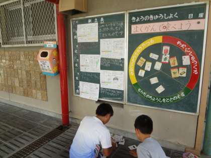 給食委員会の子どもたちが栄養黒板の作成をしていました。