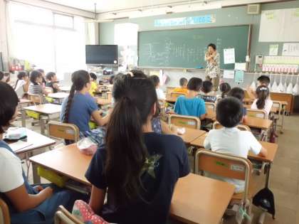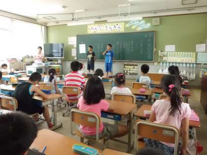地域委員さんにも来校いただき,集団登校やラジオ体操についての話を聞きました。暑い中,ありがとうございました。
