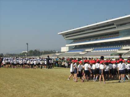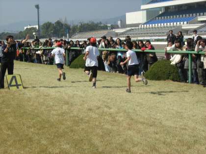 持久走大会 公開日 2010/02/24 更新日 2010/02/24 学校の様子 今日は京都競馬場をお借りして,明親小学校の持久走大会を実施しました。1.5キロメートルのコースを低学年は1周,中学年は2周,高学年は3周走りました。みんな元気に走りきることができました。