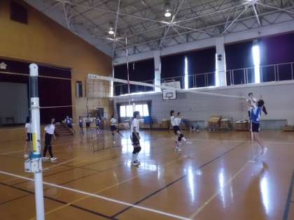 美豆小学校のバレーボール部の人達がきてくれました。明親小学校は6名が参加しました。