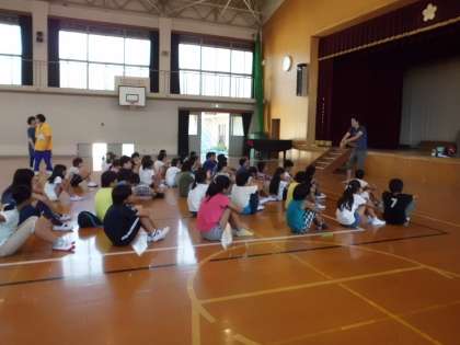 本日,長期宿泊に向けて5年生が体育館に集まりました。