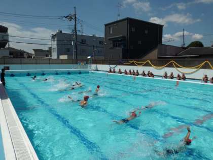 本日,水泳教室最終日です。今日は,中学年の検定が行われています。