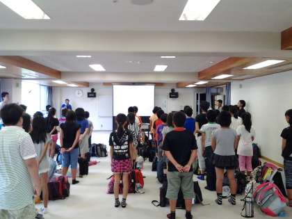 入所式では校歌をうたったり,4日間の決意を述べました。