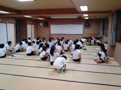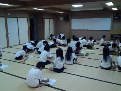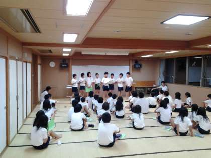 反省会の様子です。各係ごとに1日の振り返りをしました。その後,班で今日の活動を振り返り,リーダーが発表しました。