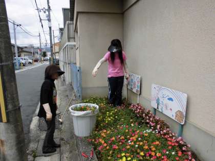 ポーチュラカがまだ咲いていて,どんどん伸びてきました。せっかく地域の女性会の方が植えてくださったので,少しでもきれいに…と思い,草抜き,摘花・摘葉をしました。きれいに咲いていてくれますように!