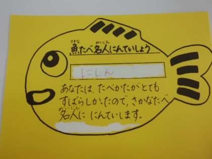 頑張った子ども達には,「魚たべ名人にんていしょう」を渡してもらいました。