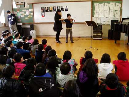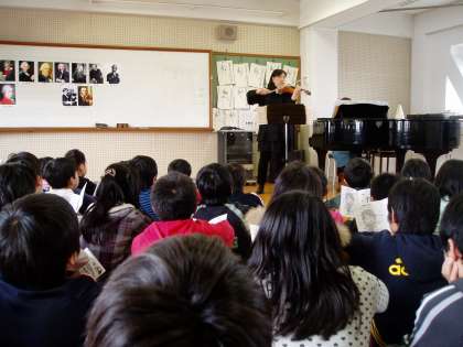 5年生保護者であり,バイオリニストでもある方を音楽の時間にお招きし,バイオリンの演奏を聴かせていただきました。また,楽器の特徴なども教えていただき,楽しく,素晴らしい学習の時間でした。