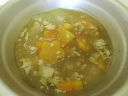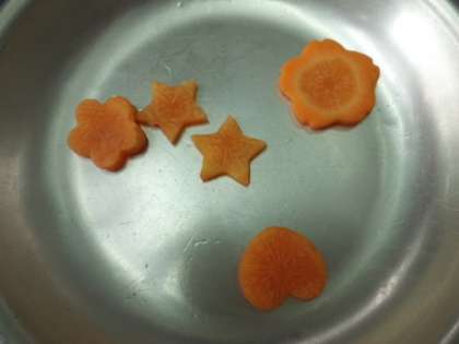 型抜きにんじんが入ったとうがんのあんかけごはんは,しょうがの味が効いて美味しくいただきました。