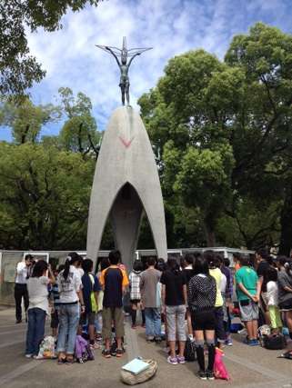広島には無事到着。原爆ドームを見学した後,平和の集いをしました。
