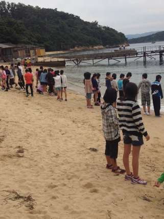 昨晩はみんなぐっすり寝て,朝の浜辺を散歩しています。
