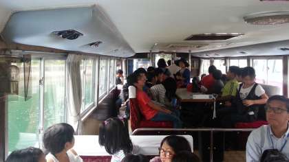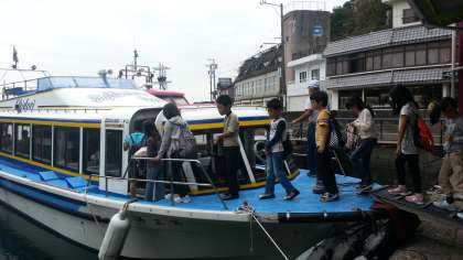 バスを降り,船に乗りました。