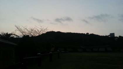 うっすらと夜が明けてきました。二日目の活動予定は,磯観察・浦山ラリー・キャンプファイヤーです。