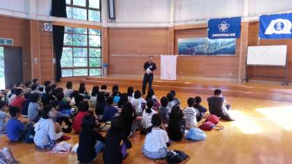 退所式では校歌を歌ったり,みさきの家の方の話を聞いたりしました。