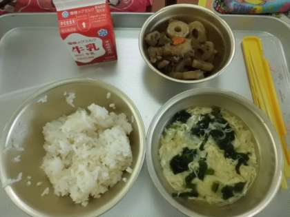 サービスホールの展示食を見て,子ども達からは「やったーかきたま汁や!」
