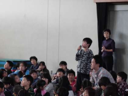 今日は,5年生の発表がありました。道徳の時間に『となりのしげちゃん』という資料を通して,学んだことや考えたことを全校児童の前で堂々と発表してくれました。「障害があっても,成長はゆっくりでも,感じる心は同じなんだ。」「相手の立場に立って自分に何ができるか考え,実際に出来ることをやっていきたい。」という思いが伝わりました。