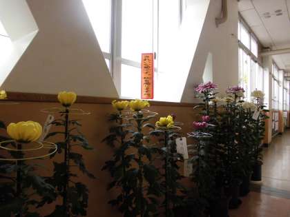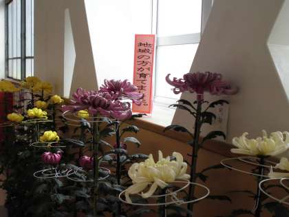 本日,地域の方から菊の鉢植えが届きました。秋を感じますね。いろとりどりな菊で,たいへん立派なものです。たくさんの手間や手数をかけて,こんなにきれいに育ててくださっているのだと思います。