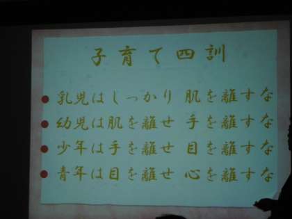 1027家庭教育学級2 公開日 2014/10/27 更新日 2014/10/27 校長室から 実際に,起きた事件や起こり得ることを教えていただき,講演の最後には,位置情報を相手に知らせないための方法を教えていただきました。そして,子育て四訓もたいへん心に残りました。 たいへんいい講演でした。もっとたくさんの方に,このお話を聞いていただきたいと思いました。