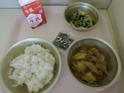 カレー味の肉じゃがは,児童にも大変人気の一品です。