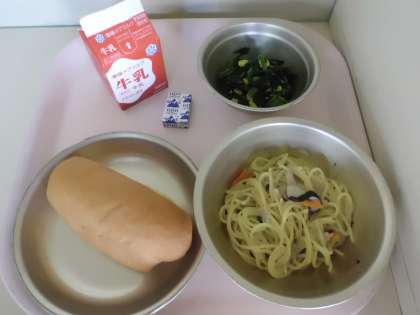 今日のきのこのスパゲティの給食は,大好き!な児童と,きのこが苦手…という児童もいましたが,苦手な児童も頑張るぞ!と食べてくれていました。
