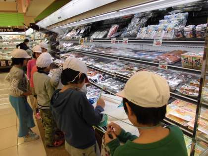 10日(月)に,社会科『商店のはたらき』の学習でスーパーイワキへ見学に行きました。どのような工夫をして,たくさんのお客さんに買い物をしてもらえるようにしているのか,またお客さんはどのような思いで,スーパーへ買い物へ来ているのかなど店員さんやお客さんにインタビューもしました。これからの学習では、見学で見つけたイワキのたくさんのひみつをまとめていきます。