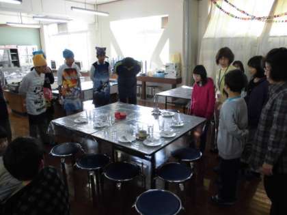 大淀カフェでは,中学生から,注文を聞かれました。メニュー表を見て,「何にしようかな。」,「どうれもおいしそうだな。」と言いながら決めました。たいへん温かな雰囲気の中,みんなでおいしくいただきました。