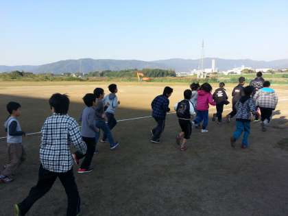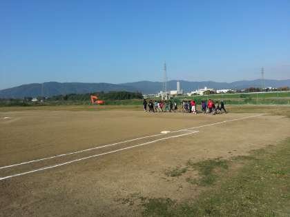 桂川グラウンドに集合し,まずはランニングです。