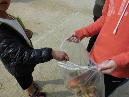全校児童がいっしょに落ち葉拾いをおこなったので,あっという間にきれいになりました。拾った葉は,生活科の学習や図工で使うようです。